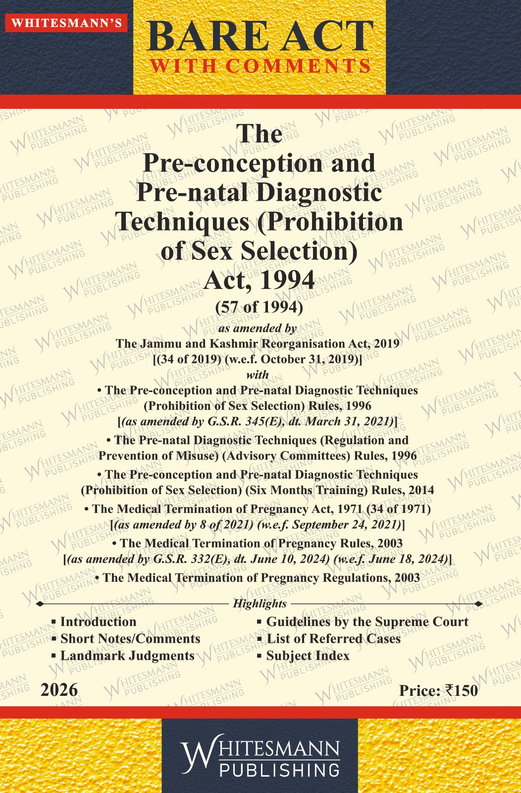The Pre-conception and Pre-natal Diagnostic Techniques (Prohibition of Sex Selection) Act,1994 Bare Act English Edition 2026